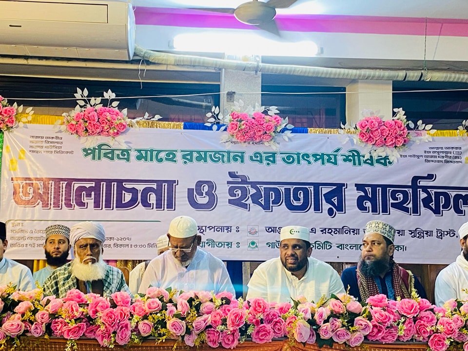 আঞ্জুমান-এ-রহমানিয়া আহমদিয়া সুন্নিয়া ট্রাস্ট, ঢাকার ব্যবস্থাপনায় ও গাউসিয়া কমিটি বাংলাদেশ, ঢাকার সহযোগিতায় আয়োজিত আলোচনা সভা ও ইফতার মাহফিল অনুষ্ঠিত।