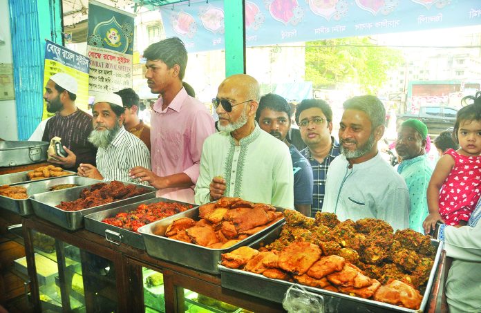 রাজধানীর বিভিন্ন এলাকার অলিতে গলিতে বাহারি ইফতারির পসরা সাজিয়ে বসেছেন ব্যবসায়ীরা। স্থায়ী ও অস্থায়ী এসব দোকান থেকে পছন্দের ইফতারি সামগ্রী কিনে নিয়ে যাচ্ছেন রাজধানীর বাসিন্দারা। গলির অস্থায়ী দোকানগুলো থেকে ইফতারি সামগ্রী কেনাদের বেশিরভাগই কর্মব্যবস্থা নিম্ন আয়ের মানুষ।