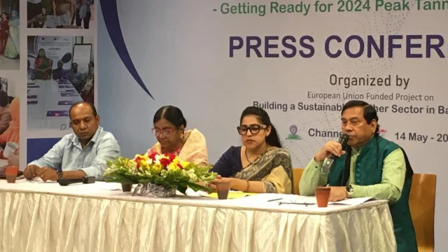 দেশের সম্ভাবনাময় চামড়াশিল্পকে টেকসই খাত হিসেবে এগিয়ে নিতে ইউরোপিয় ইউনিয়নের সহযোগিতায় একযোগে কাজ করছে তিনটি বেসরকারি সংস্থা। তাদের নেওয়া কর্মপরিকল্পনা বিস্তারিত জানাতে বৃহস্পতিবার (১৬ মে) বঙ্গবন্ধু আন্তর্জাতিক সম্মেলন কেন্দ্রে জাতীয় সংলাপের আয়োজন করা হয়েছে। সেখানে প্রধান অতিথি হিসেবে উপস্থিত থাকবেন পরিবেশ, বন ও জলবায়ুমন্ত্রী সাবের হোসেন চৌধুরী।