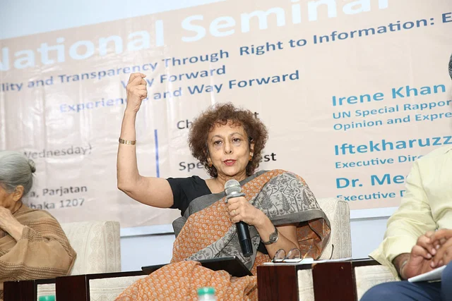 জাতিসংঘের মতপ্রকাশের স্বাধীনতাবিষয়ক বিশেষ র‍্যাপোর্টিয়ার আইরিন খান বলেছেন, তথ্যপ্রাপ্তি ও বাক্‌স্বাধীনতা ছাড়া উন্নয়ন যেমন সম্ভব নয়, তেমনি গণতন্ত্রও টিকে থাকতে পারে না। মানবাধিকারের ক্ষেত্রেও এ দুটি অভিন্ন ও গুরুত্বপূর্ণ বিষয়।