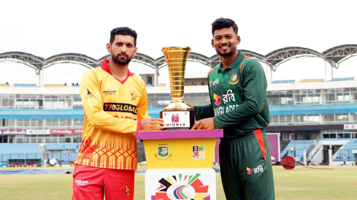 জিম্বাবুয়ের বিপক্ষে পাঁচ ম্যাচ টি-টোয়েন্টি সিরিজের দ্বিতীয় ম্যাচে মাঠে নেমেছে বাংলাদেশ। রোববার (৫ মে) চট্টগ্রামের জহুর আহমেদ চৌধুরী স্টেডিয়ামে টস জিতে জিম্বাবুয়েকে ব্যাটিংয়ে পাঠিয়েছেন টাইগার অধিনায়ক নাজমুল হোসেন শান্ত। ব্যাট করতে নেমে টাইগার বোলারদের নিয়ন্ত্রিত বোলিংয়ে ধুঁকছে জিম্বাবুয়ে।