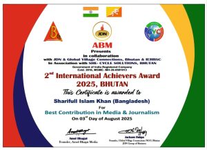 ভুটানের রাজধানী থিম্পুতে ৪ বাংলাদেশিসহ ‘ইন্টারন্যাশনাল অ্যাচিভার্স অ্যাওয়ার্ড’ ১৩ গুণীজনকে সম্মাননা