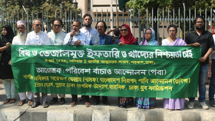বিষ ও ভেজালমুক্ত ইফতারি এবং খাদ্য নিশ্চিত করার দাবিতে মানববন্ধন করেছে কয়েকটি পরিবেশবাদী সংগঠন। মানববন্ধন থেকে কার্যকর বিষ ও ভেজালমুক্ত ইফতারি এবং খাদ্য নিশ্চিত করতে কার্যকর পদক্ষেপ গ্রহণণের দাবি জানিয়েছে তারা।