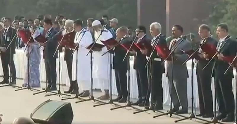 ঢাকাঃ রাষ্ট্রপতি মো. সাহাবুদ্দিন আজ বিকেল ৪টায় জাতীয় সংসদ কমপ্লেক্সের দক্ষিণ প্লাজায় তারেক রহমান এবং তাঁর নতুন মন্ত্রীদের শপথ বাক্য পাঠ করান। প্রথমে তিনি বিকেল ৪টা ১২ মিনিটে তারেক রহমানকে প্রধানমন্ত্রী হিসেবে শপথবাক্য পাঠ করান। এরপর পর্যায়ক্রমে বিকেল ৪টা ১৮ মিনিটে মন্ত্রী ও পরে ৪টা ২৬ মিনিটে প্রতিমন্ত্রীদের শপথবাক্য পাঠ করানো হয়।