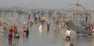 চলনবিলে মৎস্য শিকারিদের বাউৎ উৎসব