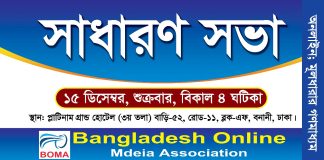 বাংলাদেশ অনলাইন মিডিয়া এসোসিয়েশনের সাধারণ সভা আজ