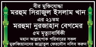 আজ মরহুমা নুরজাহান বেগমের ৫ম মৃত্যুবার্ষিকী